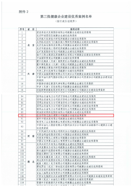 臨沂陽光熱力入選全國第三批健康企業(yè)建設(shè)優(yōu)秀案例